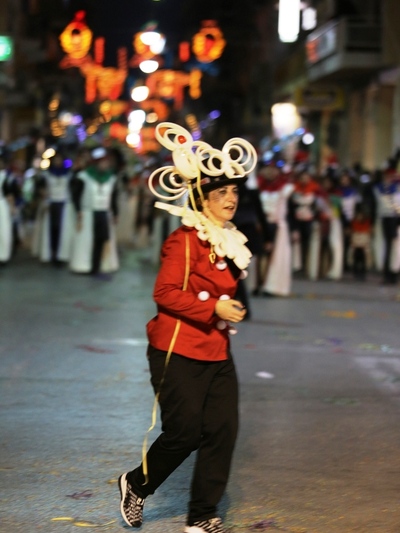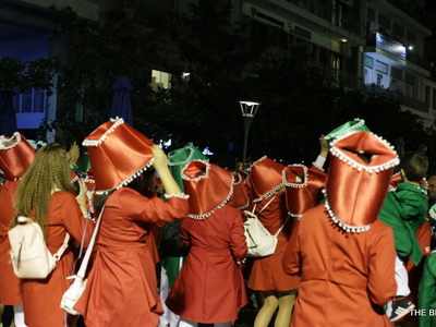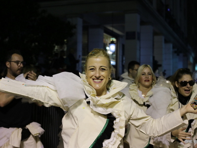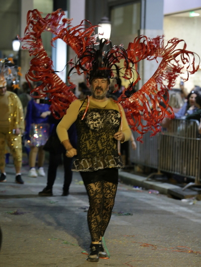 που διαδέχονται τα άρματα του Δήμου. Οι φωτισμοί, η γρήγορη ροή, τα χρώματα, ο αυθορμητισμός, η ευρηματικότητα, η φαντασία, η δημιουργία, η σάτιρα και το κέφι συνδυάζονται δίνοντας ένα φαντασμαγορικό θέαμα, που δίνει λάμψη και μεγαλοπρέπεια στη νύχτα του Σαββάτου.