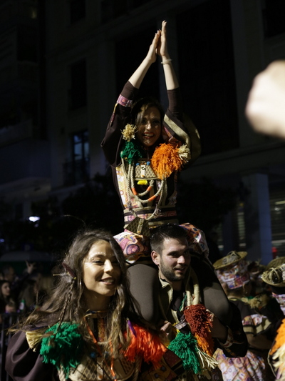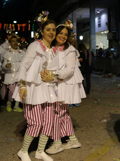 Πλούσιο και μοναδικό θέαμα από τους χιλιάδες καρναβαλιστές το βράδυ του Σαββάτου στη νυχτερινή ποδαράτη. Οι φωτισμοί, η γρήγορη ροή, τα χρώματα, ο αυθορμητισμός, η ευρηματικότητα, η φαντασία, η δημιουργία, η σάτιρα και το κέφι συνδυάζονται δίνοντας ένα φαντασμαγορικό θέαμα, που δίνει λάμψη και μεγαλοπρέπεια στη νύχτα του Σαββάτου.