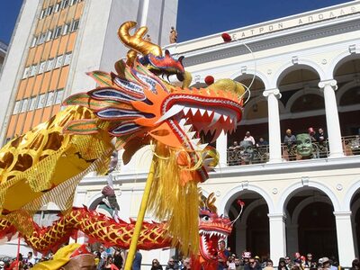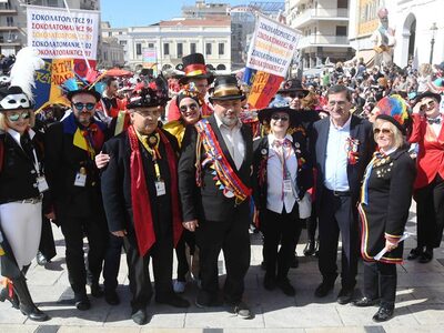 Η Μπάντα του Δήμου, οι Μαζορέτες, η αντιπροσωπεία των σωματείων των σοκολατοριχτών με το καλάθι με σοκολάτες, που πρόσφεραν στον Δήμαρχο Πατρέων μπροστά από το Δημοτικό Θέατρο, ο εκπληκτικός κινέζικος θίασος “Flying Dragons and Dancing Lions - Team of Cuigezhuang Township” από το Πεκίνο με την παρουσίαση του εντυπωσιακού θεάτρου δρόμου του Κινέζικου Δράκου και με τα λιοντάρια του, που μας μετέφερε ταυτόχρονα σημαντικά στοιχεία των εθίμων και του πολιτισμού από τη χώρα του, έδωσαν την ιδανική πρώτη εικόνα.
