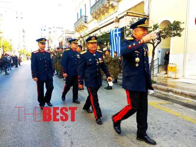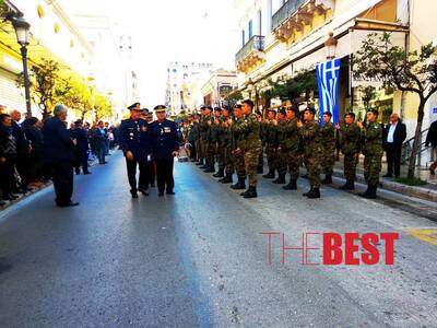 Στις 12 ξεκινά η παρέλαση πολιτικών και στρατιωτικών τμημάτων και τμημάτων Σωμάτων Ασφαλείας με τη συμμετοχή και τροχοφόρων τμημάτων, μπροστά από τους επισήμους και το λαό, επί της οδού Αγίου Ανδρέου από το ύψος της οδού Αράτου και τερματισμό στον Ι.Ν. Αγίου Ανδρέα.