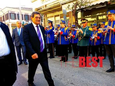 Έξω από το Ναό, επί της Μαιζώνος βρίσκονται τμήματα Ενόπλων Δυνάμεων και η μπάντα της Δημοτικής Μουσικής, που αποδίδει τιμές στους επισήμους, ενώ κόσμος είναι συγκεντρωμένος και στο πεζοδρόμιο απέναντι από το ναό.