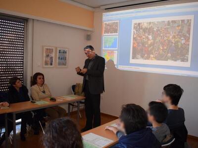 Η δίωρη συνάντηση-συζήτηση που έγινε το Σάββατο 16 Μαρτίου πραγματοποιήθηκε στο πλαίσιο της γνωριμίας και ευαισθητοποίησης των μαθητών του προγράμματος Αγωγής Υγείας με θέμα "Οι μικροί εξερευνητές ... με οδηγό το χθες χτίζουμε το αύριο, γιατί μας αφορά", που υλοποιείται στο 1ο Γυμνάσιο Πατρών από τις καθηγήτριες κ. Σακκά Βιργινία, φιλόλογο και κ. Πανούτσου Βιολέτα, φιλόλογο.