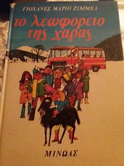 «Το λεωφορείο της χαράς» του Γιοχάνες Μάριο Ζίμμελ. 19 μικροί μαθητές με επικεφαλής μια παιδαγωγό φεύγουν για τη χιονισμένη εξοχή, όπου θα περνούσαν τις χριστουγεννιάτικες διακοπές τους και το ταξίδι τους έμελλε να είναι γεμάτο συναρπαστικές περιπέτειες.