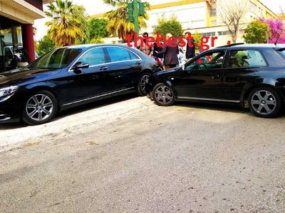 Αυτοκίνητο συκγρούστηκε με μηχανή και στη συνέχεια το αυτοκίνητο ακούμπησε σε σταθμευμένο όχημα.