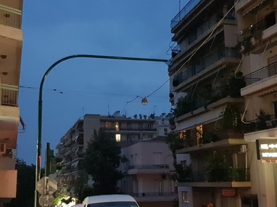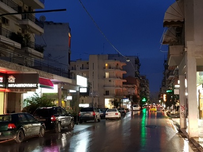 Με το φως των πινακίδων από τα εμπορικά καταστήματα κινούνταν οι οδηγοί νωρίτερα στο κέντρο της Πάτρας. Τα φωτιστικά μέσα του ηλεκτροφωτισμού ήταν σβηστά.