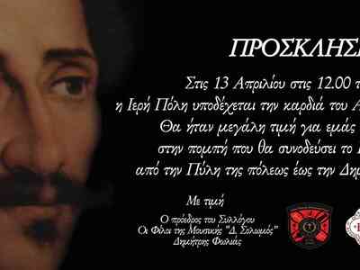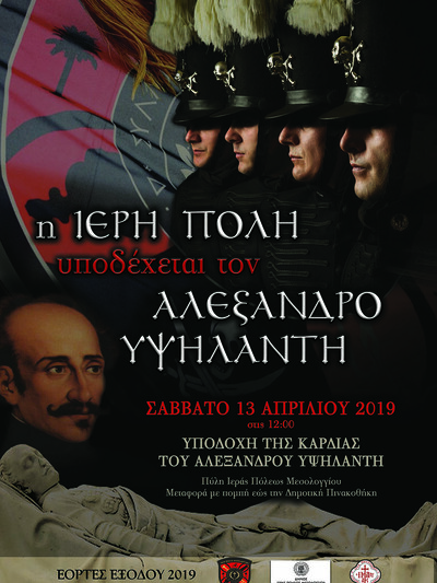 Το Σάββατο 13 Απριλίου 2019 η Ιερή Πόλη του Μεσολογγίου υποδέχεται την Καρδιά του Αλεξάνδρου Υψηλάντη, Αρχηγού της Ελληνικής Επαναστάσεως.