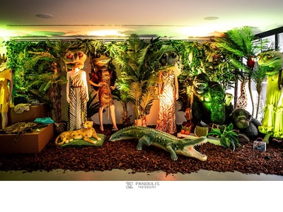Τα σκηνικά είχαν κάτι από Άννα Καρένινα, Αλίκη στη Χώρα των Θαυμάτων, άγρια ζούγκλα, γραφικό αχυρώνα, αλλά και παραδοσιακή Σικελία. Κούκλες από τα μπαλκόνια του κτιρίου ατένιζαν τον προαύλιο χώρο φορώντας Dolce & Gabbana runway pieces, ενώ πίσω από επιβλητικές τζαμαρίες, στήθηκαν μερικά από τα haute couture ρούχα της φετινής έκθεσης, όπως το σακάκι – δωρεά του Λάκη Γαβαλά- Hedi Slimane for Dior Hommes που ακόμα ένα στον κόσμο, ανήκε στον θρυλικό David Bowie, το γεμάτο παγιέτες και αστέρια μίνι Dolce & Gabbana φόρεμα – δωρεά του Δημήτρη Τσερτσίδη- που ίδιο έχει φορεθεί από τη pop queen Beyonce αλλά και συλλεκτικά deux pieces διά χειρός John Galliano for Dior. Oι χορηγοί ήταν πάρα πολλοί ενώ τα περισσότερα βλέμματα έκλεψαν τα κεντημένα μίνι φορέματα της Μαρίνας Βερνίκου και της Βίκυς Καγιά.