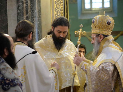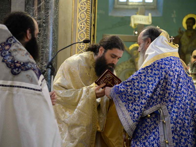 Ο κ.κ. Χρυσόστομος χειροτόνησε σε Πρεσβύτερο τον εὐλαβέστατο Διάκονο Σωτήριο Μανέτα, ο οποίος και αναμένεται να λειτουργεί από εδώ και στο εξής στην Παντάνασσα. Ο π. Σωτήριος έλαβε συγκινημένος τον ανώτερο βαθμό της ιεροσύνης ενώ στο ναό βρίσκονταν για να μοιραστούν τη χαρά μαζί του, η πρεσβυτέρα του και τα δύο μικρά παιδιά τους και η υπόλοιπη οικογένεια τους.
