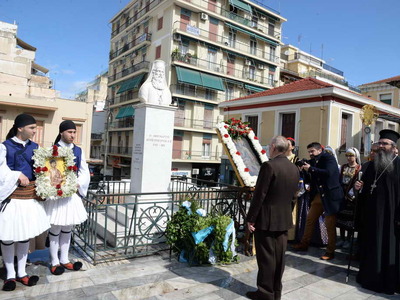 Στο ναό της Παντάνασσας είναι θησαυρισμένη ἡ Ἱερά Εικόνα τοῦ Μεγάλου Πατριάρχου, ἐνῶ στήν πλατεία ἒμπροσθεν τοῦ Ἱεροῦ Ναοῦ, ἒχει ἀπό ἐτῶν στηθεῖ ἡ προτομή τοῦ Ἐθνάρχου καί Ἱερομάρτυρος τῆς Πίστεως καί τῆς Πατρίδος όπου στο τέλος της Θείας λειτουργίας έγινε κατάθεση στεφάνων, επιμνημόσυνη δέηση ενώ έγινε και ανάκρουση του εθνικού μας ύμνου από την μπάντα του Δήμου.