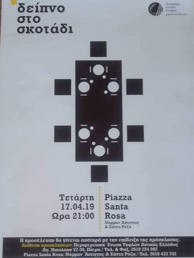 To 2017 έγινε για πρώτη φορά ένα τέτοιο δείπνο από την Περιφέρεια Δυτικής Ελλάδας σε συνεργασία με την Περιφερειακή Ένωση Τυφλών Δυτικής Ελλάδας με τίτλο «Δείπνο στο Σκοτάδι».