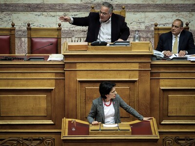 «Αυτές οι κραυγές μίσους δεν έχουν θέση εδώ πέρα!», είπε η βουλευτής του ΣΥΡΙΖΑ Ευαγγελία Βαγιωνάκη που ανέβηκε στο βήμα εκείνη την ώρα.