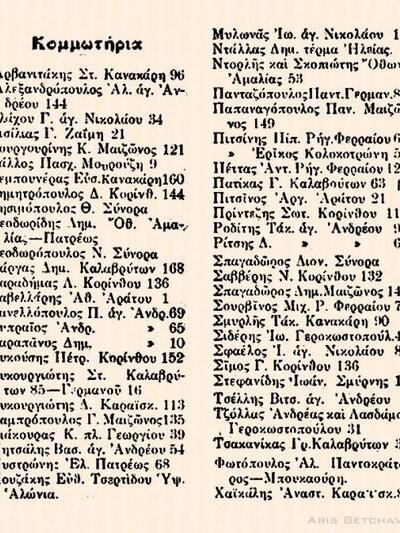Κι αν απορείτε γιατί τη λίστα δεν υπάρχει ούτε ένα γυναικείο όνομα... Δεν υπήρχαν γυναίκες κομμώτριες προπολεμικά στην Πάτρα. Οι μεγαλύτεροι κομμωτές, σεφ και μόδιστροι άλλωστε ήσαν πάντα άνδρες..