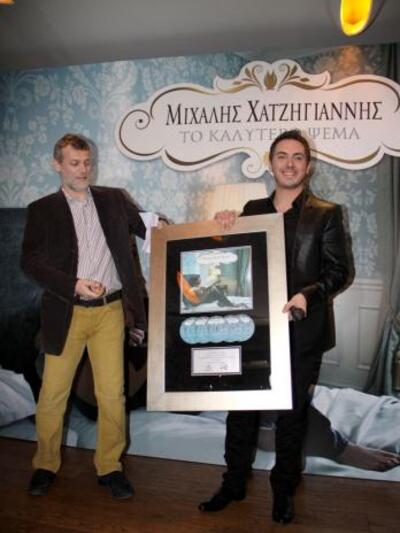 Απονομή πλατινένιου δίσκου για τον Μιχάλη Χατζηγιάννη, χθες το βράδυ στις 21:00 στο bar του ξενοδοχείου King George, T- Palace, για τον δίσκο του «Το καλύτερο ψέμα». Στο πλευρό του φυσικά ήταν όλη η ομάδα που εργάστηκε για τον δίσκο. Το παρόν έδωσε και ο Έλληνας ποιητής και στιχουργός Μάνος Ελευθερίου.