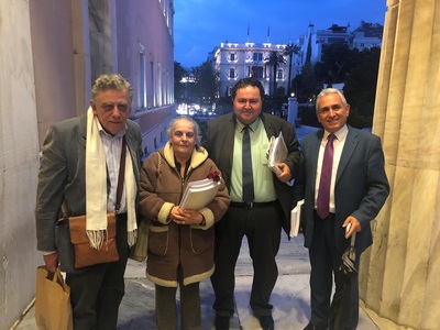 Ο Δήμαρχος Καλαβρύτων και Πρόεδρος του Διοικητικού Συμβουλίου του Δικτύου Μαρτυρικών Πόλεων και Χωριών της Ελλάδος, περιόδου 1940-1945 «Ελληνικά Ολοκαυτώματα», Γιώργος Λαζουράς, παρακολούθησε, την Τετάρτη 17 Απριλίου 2019, από το μεσημέρι και μετά, μέχρι τέλους, ολόκληρη τη συζήτηση, που έγινε στη Βουλή, για την έγκριση της, από Ιούνιο 2016, Έκθεσης – Πορίσματος, της Διακομματικής Κοινοβουλευτικής Επιτροπής, για τη Διεκδίκηση των Γερμανικών Οφειλών, μαζί με τους Προέδρους των Ενώσεων Θυμάτων, Χαρίλαο Ερμείδη και Βασίλειο Καρκούλια και μέλη του Εθνικού Συμβουλίου Διεκδίκησης (ΕΣΔΟΓΕ).