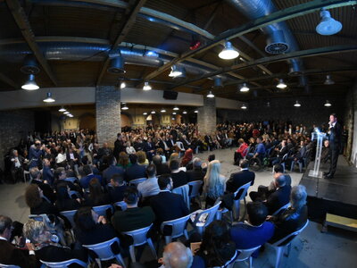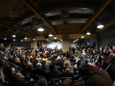 Να σημειωθεί δε ότι εκτός του ότι ο πολυχώρος γέμισε ασφυκτικά, εκατοντάδες συμπολίτες παρακολούθησαν την ομιλία του υποψήφιου Δημάρχου εκτός αίθουσας, γεμίζοντας σχεδόν τους χώρους της ΒΕΣΟ ΜΑΡΕ.