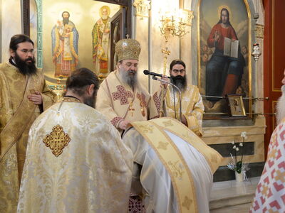 Κατά τήν διάρκεια τῆς Θείας Λειτουργίας ὁ Σεβασμιώτατος προέβη στήν εἰς Πρεσβύτερον χειροτονία τοῦ εὐλαβεστάτου Διακόνου Γεωργίου Βλάχου, πρός τόν ὁποῖον ἀπηύθυνε μετά τήν συγκινητική προσλαλιά του, πατρικές συμβουλές, προτρέποντάς τον νά σηκώσῃ μέ ὑπομονή καί καρτερία καί βαθειά πίστη στόν Θεό τόν σταυρό τῆς Ἱερωσύνης. Ὁ Σεβασμιώτατος τοῦ ὑπενθύμισε ὃτι ἡ Ἱερωσύνη εἶναι πορεία ἀσκήσεως, ὑπομονῆς, ταπεινώσεως καί ἀγάπης. Εἶναι δρόμος ἀνηφορικός, εἶναι Γογλοθᾶς, εἶναι σταυρός πού ὃμως καταλήγει στή νίκη καί στήν χαρά τῆς Ἀναστάσεως.