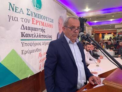 "Με σύνθημα «θα μιλήσουμε με έργα μετά τις εκλογές», ο επικεφαλής του συνδυασμού «Νέα Συμπόρευση για τον Ερύμανθο», υποψήφιος Δήμαρχος Ερυμάνθου, Διαμαντής Κανελλόπουλος έστειλε μήνυμα νίκης στις εκλογές της 26ης Μαΐου στην πρώτη μεγάλη προεκλογική του συγκέντρωση που έγινε το βράδυ του Σαββάτου στο «Μπαλκόνι» Χαλανδρίτσας", αναφέρει η σχετική ανακοίνωση, η οποία συνεχίζει ως εξής:
