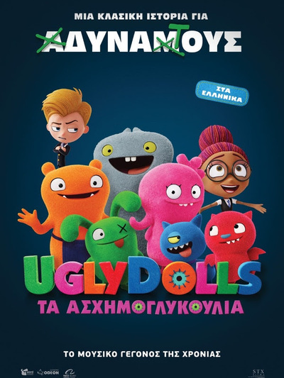 Αμέσως μετά το Πάσχα θα καταφθάσει στις κινηματογραφικές αίθουσες της χώρας μας το απίθανο animation φιλμ με τίτλο «UglyDolls: Τα Ασχημογλυκούλια». Η ταινία σε διανομή της Odeon θ’ αρχίσει να προβάλλεται από τις 9 Μαΐου 2019 και την περιμένουμε και στην Πάτρα στα Odeon Veso Mare.