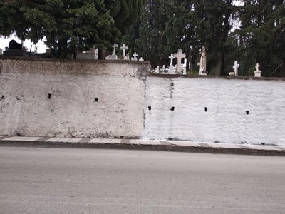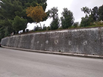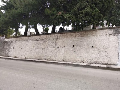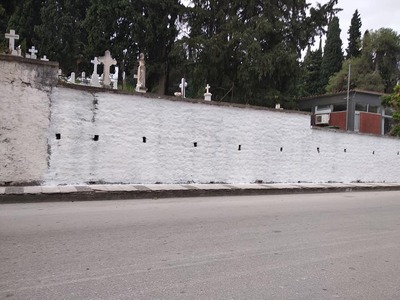 Χαρακτηριστικά η μάντρα του κοιμητηρίου από την οδό Αμερικής έως την οδό Τήνου έχει να καλλωπιστεί από την προηγούμενη δημοτική αρχή.