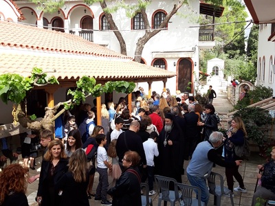 Το Μυστήριο του Ιερού Ευχελαίου τελέστηκε την Μεγάλη Τετάρτη 24 Απριλίου 2019 στην Ιερά Μονή Προφήτου Ηλιού Πατρών. Το Ιερό Ευχέλαιο τέλεσε ο Θεοφιλέστατος Επίσκοπος Κερνίτσης κ. Χρύσανθος, ο οποίος στην σύντομη ομιλία του αναφέρθηκε στην αξία και σημασία του ιερού μυστήριου του ευχέλαιου και προέτρεψε τους ευσεβείς χριστιανούς να συνεχίσουν να αγωνίζονται πνευματικά ώστε με χαρά να εορτάσουν το Πάσχα.