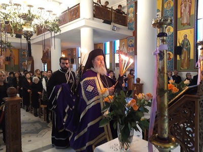Την Μεγάλη Παρασκευή ο Θεοφιλέστατος Επίσκοπος Κερνίτσης κ. Χρύσανθος θα είναι τόσο το πρωί για την Αποκαθήλωση όσο και το απόγευμα για τον Επιτάφιο στο νέο ιερό ναό του Αγίου Ανδρέου (η διαδρομή που ακολουθεί η ενορία του Πολιούχου Αποστόλου Ανδρέου είθισται να είναι: οδός Αγ. Ανδρέου, Γούναρη, Μαιζώνος, Παπαφλέσσα και από την Ευμήλου επιστροφή στο ναό).