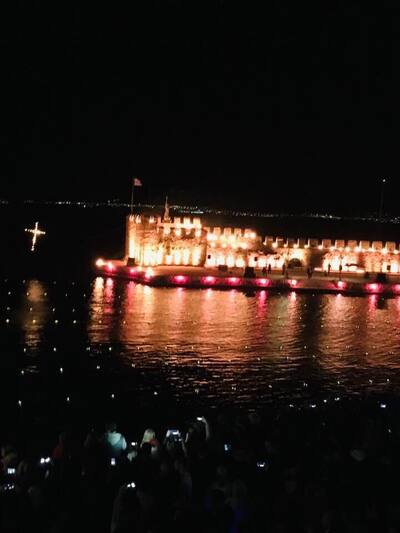 Ακολουθεί ένα φαντασμαγορικό θέαμα πάνω από το φλεγόμενο λιμάνι που μένει αξέχαστο σε όσους το έχουν παρακολουθήσει, πολλοί εκ των οποίων επιστρέφουν κάθε χρόνο τέτοια μέρα στη Ναύπακτο.