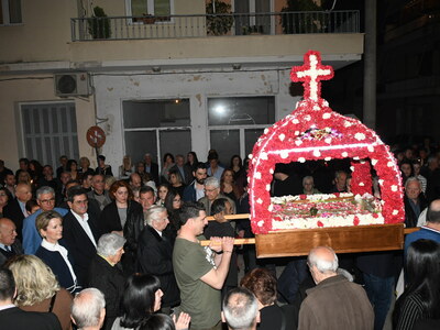 Στις 9 το βράδυ, ο Δήμαρχος, ο Πρόεδρος του Κοινωνικού Οργανισμού του Δήμου Πατρέων, Θόδωρος Τουλγαρίδης και οι υποψήφιοι δημοτικοί σύμβουλοι με την «Λαϊκή Συσπείρωση», Αναστασία Τογιοπούλου και Δημήτρης Σπαρτινός, παρέστησαν στην περιφορά του Επιταφίου του Ι. Ν. Αγίας Φωτεινής, στα Προσφυγικά.