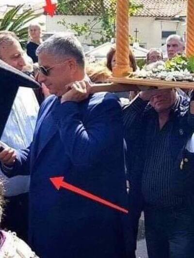 Αίσθηση προκαλούν οι φωτογραφίες του Γιώργου Πατούλη στις οποίες φαίνεται να στέλνει μήνυμα από το κινητό του τη στιγμή που κρατάει τον Επιτάφιο κατά την περιφορά του.