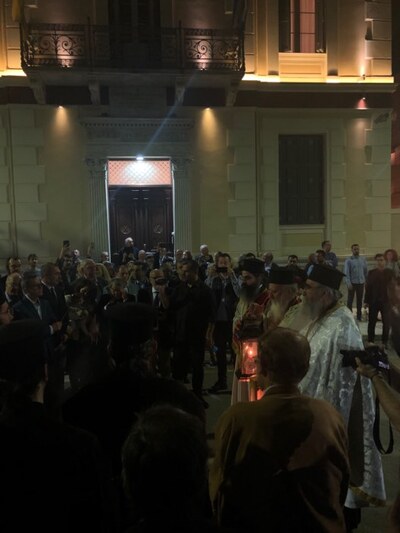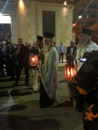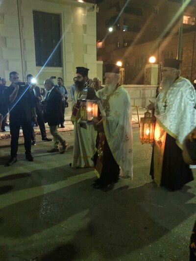 Παρά την αναμενόμενη καθυστέρηση, τελικά το Άγιο Φως έφθασε λίγα λεπτά μετά τις 10 το βράδυ στην αρχιεπισκοπή Πατρών, δίπλα από τον Ιερό Ναό Αγίου Ανδρέου, συνοδευόμενο από αστυνομικές δυνάμεις. Εφτασε στην Ελευσίνα το Άγιο Φως- Με μεγάλη καθυστέρηση