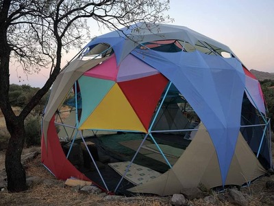 Από τότε και μετά έχουμε πειραματιστεί με διαφορετικά είδη πανιών, αλλά και σκελετών. Έχουμε μελετήσει και αναλύσει μεγάλο αριθμό γεωδαιτικών σχημάτων. Έχουμε στήσει dome σε festival, σε αθλητικές εκδηλώσεις, σε χώρους για yoga και meditation, ακόμα και … στην παραλία για να κοιμηθούμε.