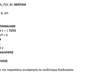 Να μετατρέψετε την παραπάνω συνάρτηση σε ισοδύναμη διαδικασία.