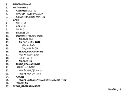 3. Η δομή επανάληψης ΓΙΑ i ΑΠΟ 1 ΜΕΧΡΙ 5 ΜΕ_ΒΗΜΑ -10 θα εκτελεστεί ακριβώς 1 φορά.
