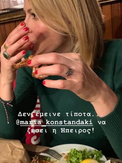 Χθες το ζευγάρι απόλαυσε τα παϊδάκια του στο Ανήλιο του Μετσόβου και η Τζένη μοιράστηκε μαζί μας τη στιγμή που έχει τελειώσει το φαγητό της και…γλύφει και τα δάχτυλά της!