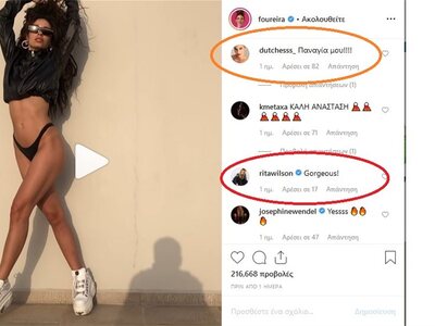 Άλλωστε η τραγουδίστρια, που διανύει επαγγελματικά μια από τις καλύτερες περιόδους, έχει χιλιάδες followers να την ακολουθούν. Ανάμεσά σε αυτούς που την ακολουθούν και της έκαναν like είναι και η Ρίτα Γουίλσον, η σύζυγος του Τομ Χανκς. H διάσημη ηθοποιός της έγραψε και τη λέξη «υπέροχη». Και η Δούκισσα Νομικού έκανε το σχόλιό της γράφοντας «Παναγιά μου».