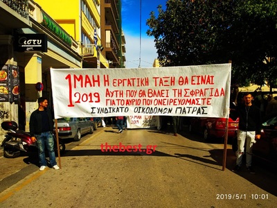 ΝΩΡΙΤΕΡΑ Στις 10 το πρωί της Τετάρτης 1η Μαϊου θα πραγματοποιηθεί έξω από το Εργατικό Κέντρο Πάτρας, στην οδό Κολοκοτρώνη, η συγκέντρωση των σωματείων που ανήκουν στις τάξεις του για την εργατική πρωτομαγιά. Οι πρώτοι έχουν αρχίσει να συγκεντρώνονται. Στη συνέχεια θα ακολουθήσει πορεία. Νωρίτερα μουσικό σχήμα έπαιξε τραγούδια. Στην ανακοίνωση του εργατικού κέντρου αναφέρεται μεταξύ άλλων: