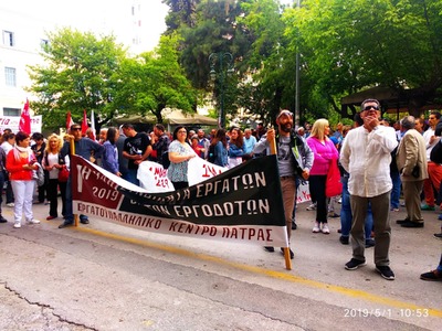 "Η Διοίκηση του Εργατικού Κέντρου Πάτρας χαιρετίζει τους χιλιάδες εργάτες που συμμετείχαν στην σημερινή απεργιακή συγκέντρωση. Η τεράστια επιτυχία της συγκέντρωσης, μας βάζει μπροστά σε νέα και πιο αυξημένα καθήκοντα για την υπεράσπιση των δίκαιων αιτημάτων της τάξης μας.