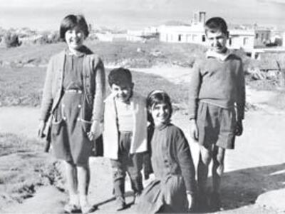 Τέσσερις πιτσιρικάδες φωτογραφίζονται ψηλά στην Αστιγγος, στο ύψος της Σάμης, όπου υπήρχε παλιά μια αλάνα (αρχείο Πέτρου Πανουσιάν).