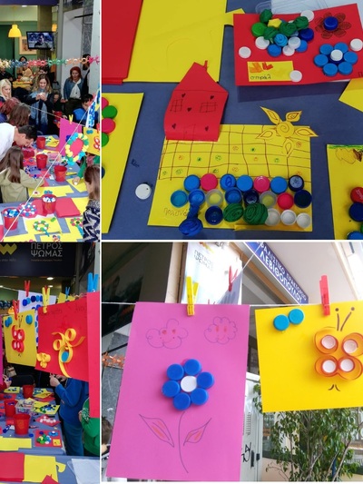 Ανήμερα της Πρωτομαγιάς το απόγευμα, με πλήθος κόσμου και με πολύ φαντασία, μικροί μεγάλοι "σπιραλολούλουδα" με πλαστικά καπάκια, δημιουργώντας, όμορφες προσωρινές συνθέσεις.