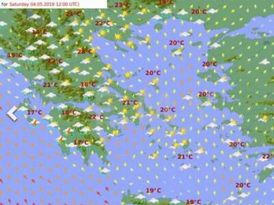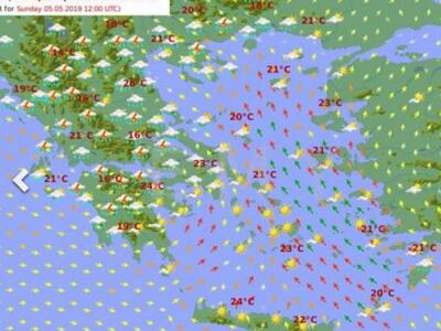Οι άνεμοι θα πνέουν από νότιες διευθύνσεις 5 με 7 και στο Αιγαίο τοπικά 8 μποφόρ, στρεφόμενοι από το μεσημέρι στα δυτικά σε δυτικών διευθύνσεων 3 με 5 μποφόρ.