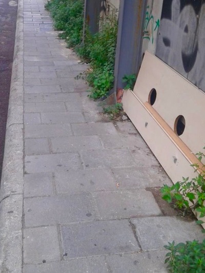 Όπου το έτσι και αλλιώς μειωμένου πλάτους πεζοδρόμιο καθίσταται σε πολλά σημεία απροσπέλαστο εξαιτίας σειράς εμποδίων, συμπεριλαμβανομένων των άγριων χόρτων, ενώ ούτως ή άλλως η συνολική όψη δημιουργεί αίσθηση εγκαταλελειμμένης πόλης. Ιδίως δε, στα σημεία όπου οι κακοτεχνίες είναι τόσο εμφανείς, που, αφενός γίνονται ενοχλητικές, αφετέρου λειτουργούν ως … παγίδες για κάθε περαστικό δημότη.