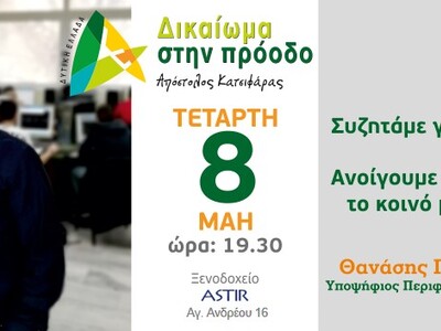 Τετάρτη 8 Μαΐου και ώρα 19:30 στο Ξενοδοχείο ASTIR