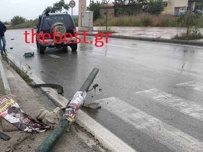 Μάλιστα το ένα όχημα έπεσε πάνω στο φανάρι με αποέλεσμα να το... "ξηλώσει".