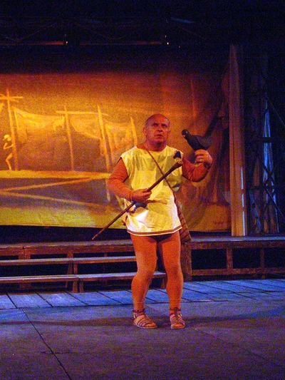 Η φωτογραφία είναι του Χάρη Καραβαγγέλη από την παράσταση του Θεάτρου Τέχνης Κάρολος Κουν «Λαϊκό Πανηγύρι - Μισός Αιώνας Αριστοφάνης» που δόθηκε την Δευτέρα 28 Ιουνίου του 2004 στο Ρωμαϊκό Ωδείο Πατρών στα πλαίσια του 23ου Φεστιβάλ Πάτρας 2004 - Θεσμός Αρχαίου Δράματος και προέρχεται από το αρχείο του Φεστιβάλ