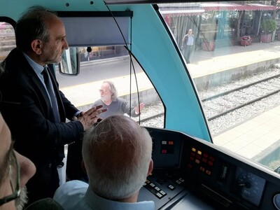Το χαρακτηριστικό καπέλο του σταθμάρχη φόρεσε για λίγο ο Περιφερειάρχης Δυτικής Ελλάδας και εκ νέου υποψήφιος Απόστολος Κατσιφάρας, ο οποίος πλαισιωμένος από Αντιπεριφερειάρχες και περιφερειακούς συμβούλους επιβιβάστηκε το πρωί της Δευτέρας 6 Μαΐου 2019 στον Προαστιακό σιδηρόδρομο στο πρώτο δοκιμαστικό δρομολόγιο που πραγματοποιήθηκε με αφετηρία τον κεντρικό σταθμό της Πάτρας και προορισμό την Κάτω Αχαΐα.
