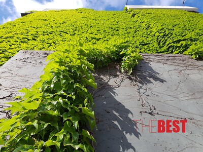Το εντυπωσιακό αναρριχούμενο φυτό έχει ντύσει όλη την πρόσοψη του κτιρίου και είναι ορατό από την πλευρά του υπεραστικού ΚΤΕΛ και επίσης από την Οθωνος Αμαλίας.
