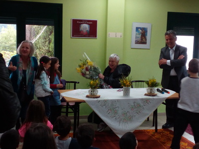 Προς έκπληξη όλων λοιπόν (είχε έρθει κόσμος και από το Κάτω Καστρίτσι και το Ρίο), επισκέφθηκε την περιοχή τους η κυρία Καλογεροπούλου συνοδευόμενη από την υπεύθυνη του Πολύεδρου Όλγα Νικολοπούλου, εικαστικό και στο χώρο του Κοινοτικού Καταστήματος που είχε γεμίσει από νωρίς, η αγαπητή ηθοποιός χάρη και σε πολλές ταινίες του Ελληνικού κινηματογράφου, Ξένια Καλογεροπούλου αφηγήθηκε ένα παραμύθι από την προσωπική της γραφίδα, την «Αγγελίνα».