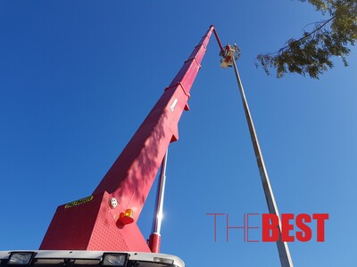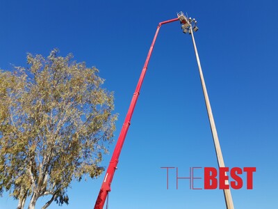 Οι εργαζόμενοι ανέβηκαν με την τηλεσκοπική μπούμα του γερανού σε ύψος 35 μέτρων για να αλλάξουν τις καμμένες λάμπες πυλώνα. Ο καλός καιρός της Τετάρτης και ειδικότερα η σχετική άπνοια, ήταν ιδανική για την εργασία σε μεγάλο υψόμετρο.