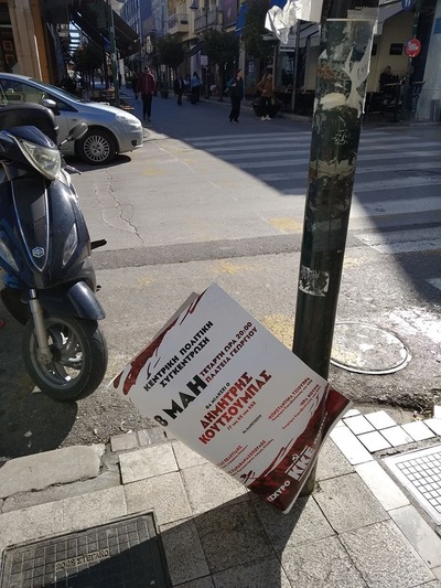 -Το γεγονός ότι έχει γεμίσει η πόλη και τα δημοτικά κτίρια με αφίσες του ΚΚΕ και του ΠΑΜΕ. Ότι έχει γίνει η Πάτρα ένας τεράστιος πίνακας ανακοινώσεων του κόμματος