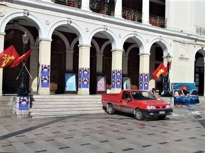 -Άξιο αναφοράς βεβαίως είναι και το εξίσου σημαντικό γεγονός ότι μια από τις πρώτες ενέργειες που έκανε η δημοτική αρχή, πιστή στη γραμμή του ΚΚΕ, ήταν να κατεβάσει τη σημαία της Ευρωπαϊκής Ένωσης από τα δημαρχείο.