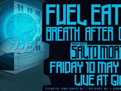 Οι Fuel Eater, ένα heavy/doom rock συγκρότημα που δημιουργήθηκε στην Πάτρα το 2012 και έχει έκτοτε κυκλοφορήσει 2 άλμπουμ, θα εμφανιστεί live μαζί με τους Breath After Coma και special guest τους Salto Mortale στη «Γιάφκα» στην οδό Κανάρη κάτω από τα Ψηλαλώνια την Παρασκευή 10 Μαΐου 2019 μετά τις 21.00.